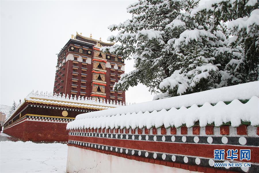 甘粛省甘南チベット族自治州合作市で5月26日、チベット族が雪に覆われたミラレパ寺院で巡禮している。5月25日から26日にかけて同市では突然の大雪に見舞われ、市街地には夏の「雪景色」が広がった。新華社が伝えた。(編集JK)