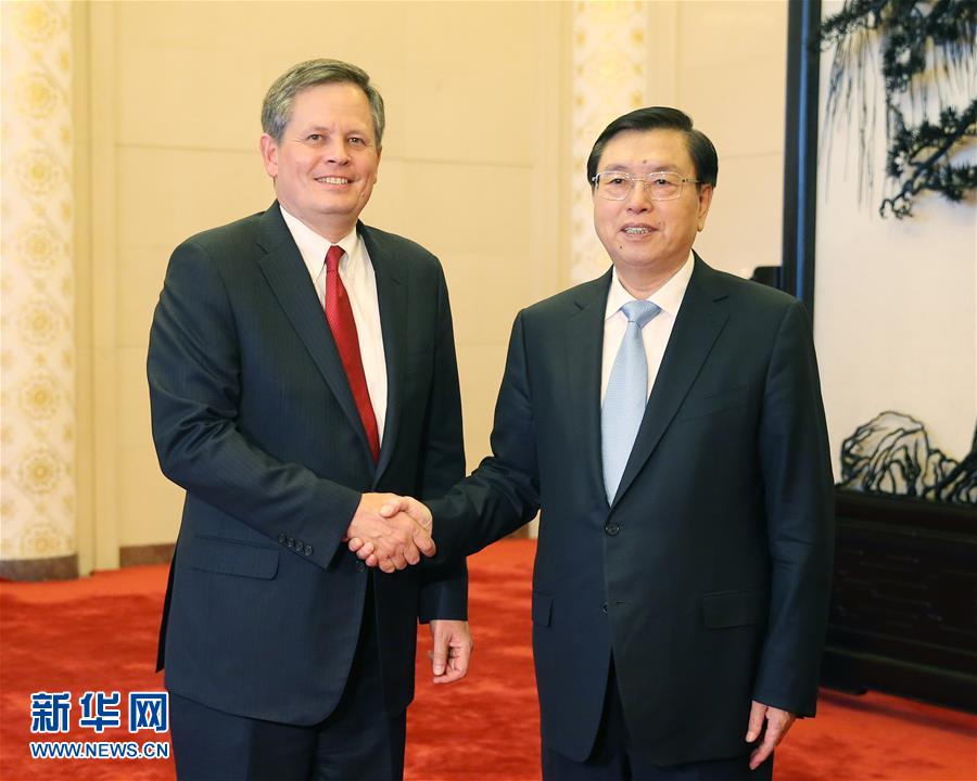 張徳江全人代常務(wù)委員長は30日、デインズ上院議員率いる米連邦議會議員訪中団と人民大會堂で會談した。新華社が伝えた。