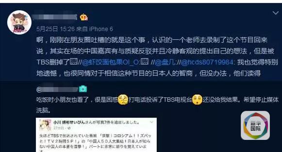 TBS系列でこのほど放送されたあるバラエティ番組で、中國人の日本でのマナー問題を取り上げ、華人ゲストを招き討論した。しかし番組放送後、多くのゲストはネット上で次々と謝罪を表明し、放送された番組は収録現(xiàn)場の実際の狀況とはかけ離れており、放送された內(nèi)容は非常に偏見に満ち、視聴者に誤解を招くものだとした。そしてこの中國人のイメージを激しく損ねる番組が放送されると、在日華人と一部のネットユーザーの怒りを買った。新華國際アプリが伝えた。