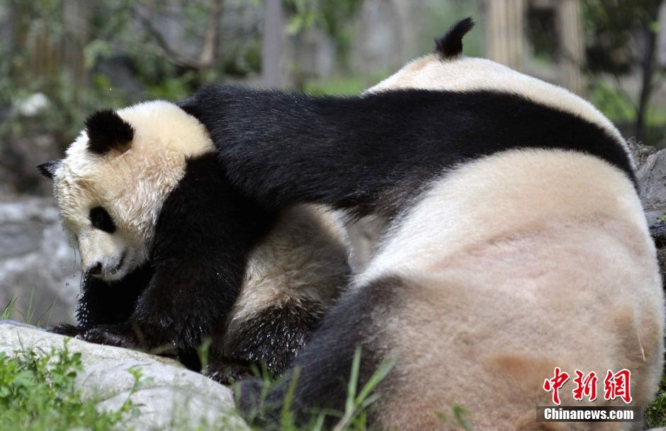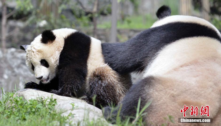 ここ數(shù)日、四川省成都市は焼けつくような日差しが降り注ぎ、気溫は一気に30度を超えた。暑さが苦手なパンダたちも様々な方法で暑さをしのいでいる。6月5日、中國パンダ保護(hù)研究センター都江堰基地では、パンダの「姚曼」が生後數(shù)ヶ月になる子パンダを無理やり「お風(fēng)呂」に入れていた。子パンダはこのお風(fēng)呂がとてもお?dú)荬苏伽丹胜盲郡瑜Δ?、不満やるかたなしといった表情を浮かべていた。中國新聞網(wǎng)が伝えた。(編集TG)