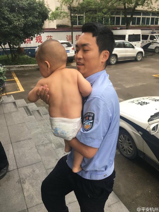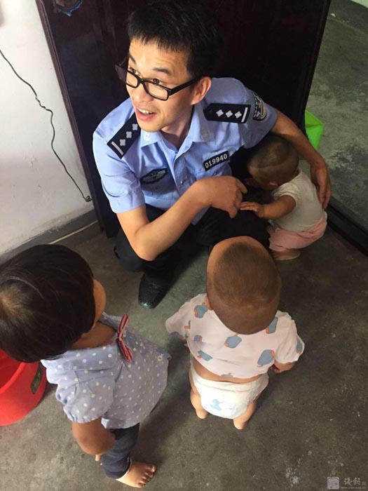 6月13日朝6時過ぎ、浙江省建徳市の警察官?陳さんは街角で朝ごはんを食べていたところ、店から50メートル離れた細(xì)い路地に3人の幼児が立っているのが突然目に飛び込んだ。泣き喚くでもなくスティックキャンディを食べている子供たち3人を暫く見ていた陳さんだが、この子たちには大人が付き添っていないことをすぐに発見、持っていた豆乳を置いて急いで子供のそばに走り寄り、交番に連れ帰った。