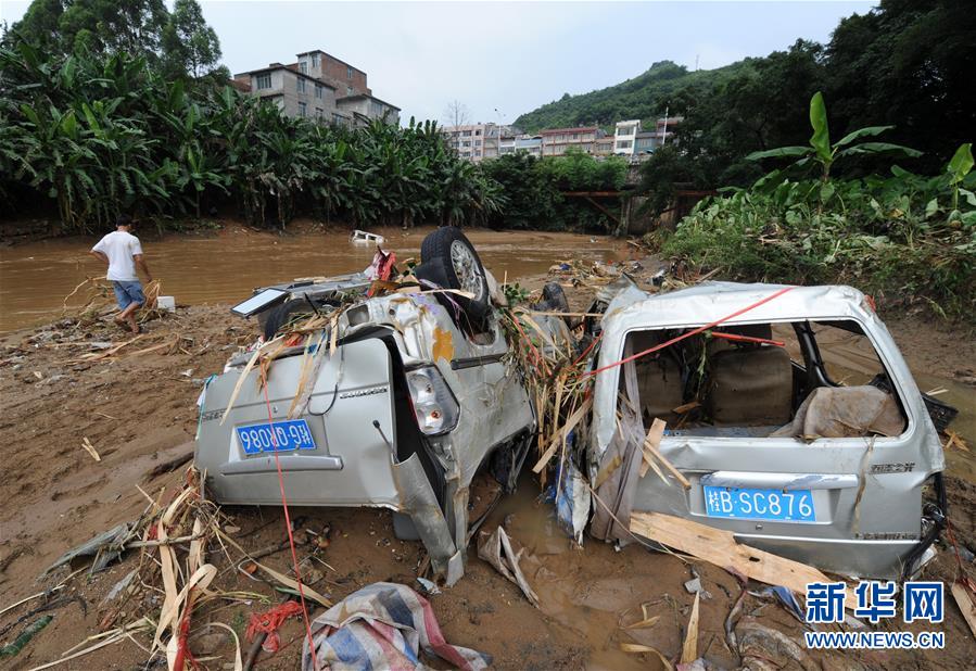 広西チワン族自治區(qū)柳州市古亭山片區(qū)獅王路のそばに6月14日、めちゃくちゃに壊れた自動車數(shù)臺が流れついた。同日未明、同市の市街地は豪雨に見舞われ、13日午前8時から14日午前8時までの24時間で降雨量は200ミリ以上にまで及び、多くの場所で洪水や冠水被害に遭った。柳州市古亭山片區(qū)獅王路では洪水によって自動車10數(shù)臺が流され、一部の車は跡形もなく消えていた。新華社が伝えた。(編集JK)