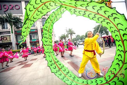 5月25日午前、襄陽市樊城望江街コミュニティの小広場では、民間蕓術パフォーマンスチームがパフォーマンスを行い、コミュニティの住民らから熱い聲援を送られていた。(編集TG)