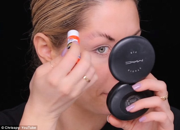 動畫の中で、クリスピーさんはまず自分の眉毛を整え、スキンヘッドのカツラをぴったり額に貼り付けてから、顔料を使って次第にドリーを描き始めた。彼女は青い顔料で自分の肌を塗り、さらに細かな部分のメイクを施している。(編集TG)