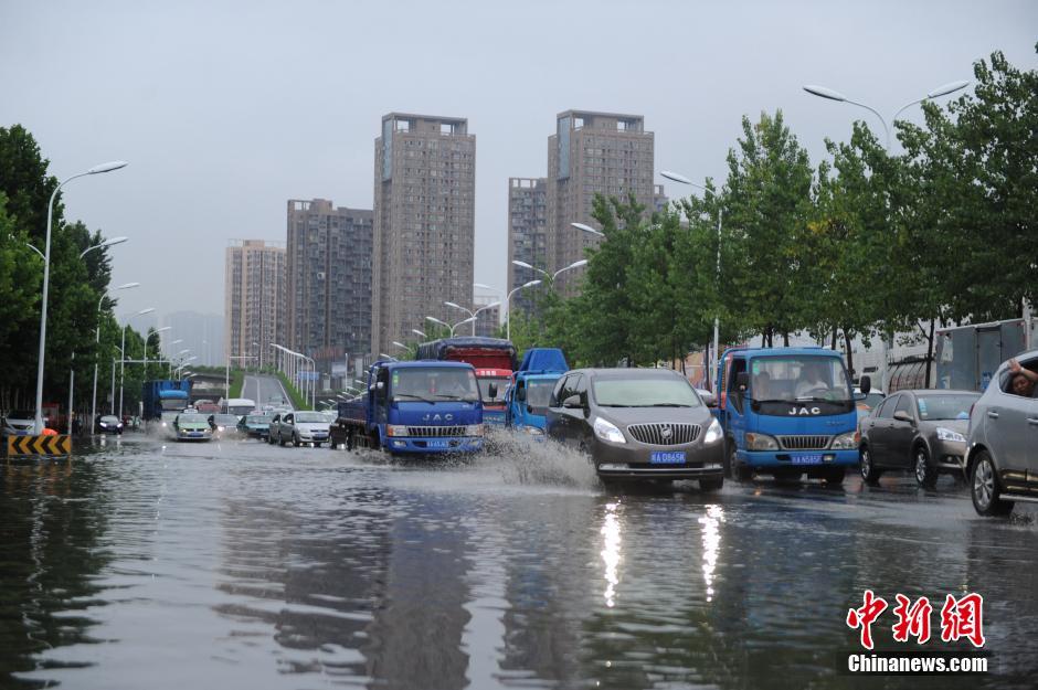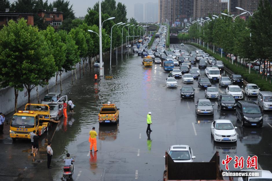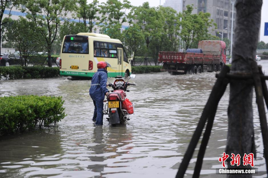 豪雨で冠水の合肥市、一部の道路が交通マヒ