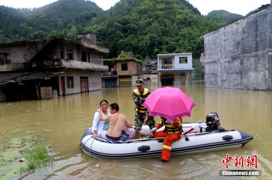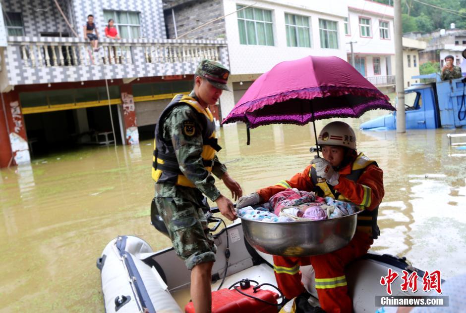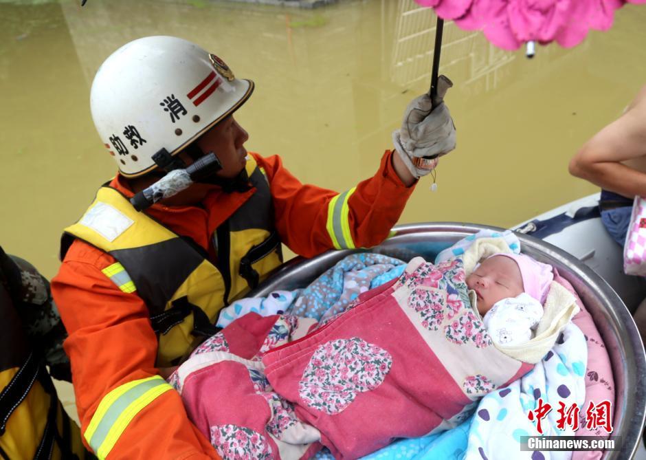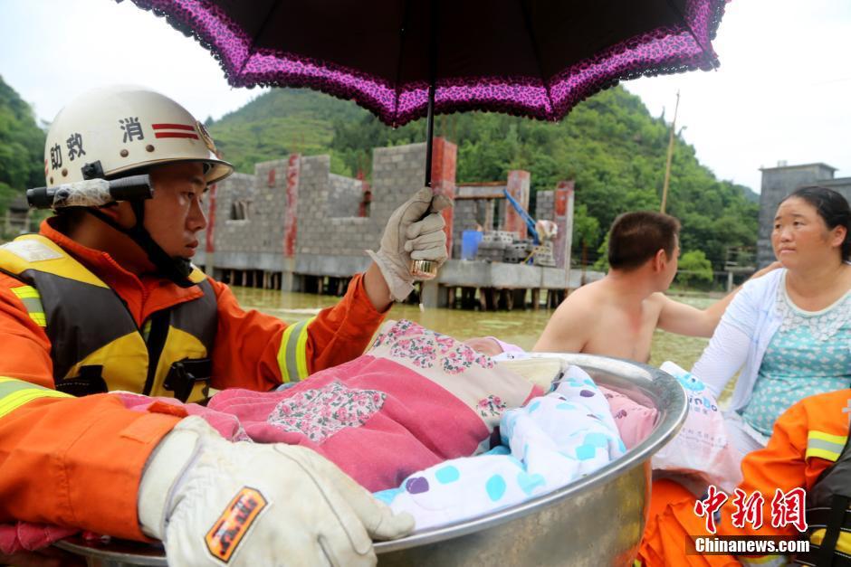 洪水で水沒の村、消防員がたらいで赤ちゃんを救出 貴州省