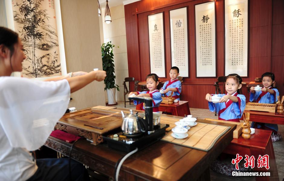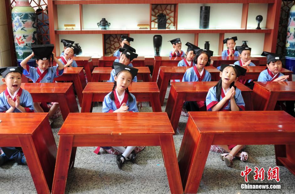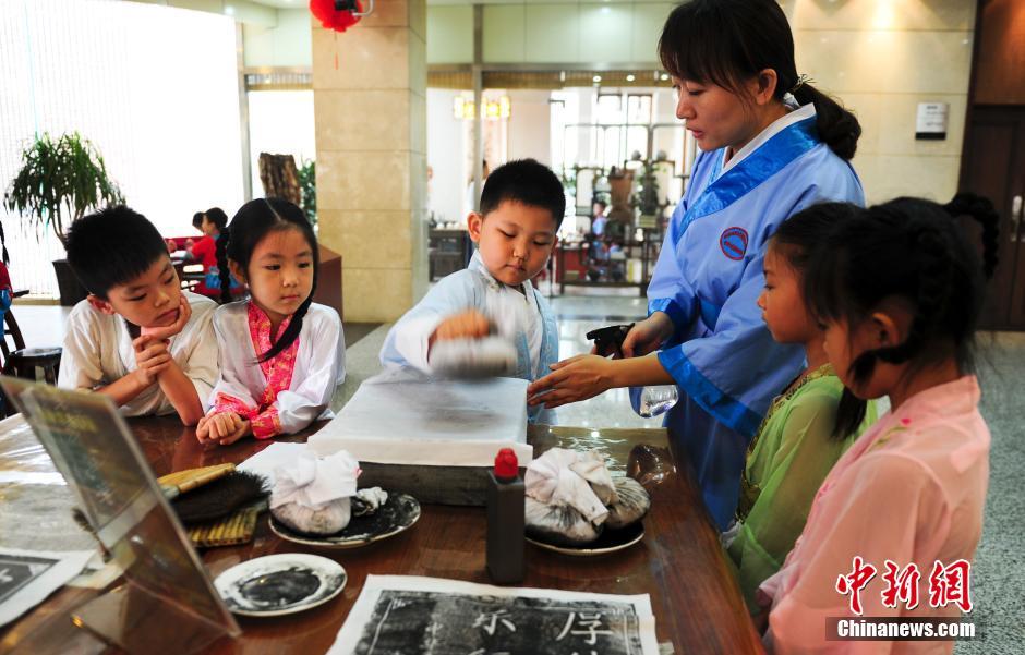 6月22日、山東省の済南婦女児童活動センターの中華文化體験基地では、多くの子供たちが漢服に身を包み、京劇の隈取を描いたり、國學(xué)の経典を朗読したり、切り絵を練習(xí)したりしていた。水墨畫の描き方を?qū)Wぶ子供たち(6月22日撮影)。中國新聞網(wǎng)が伝えた。(編集TG)
