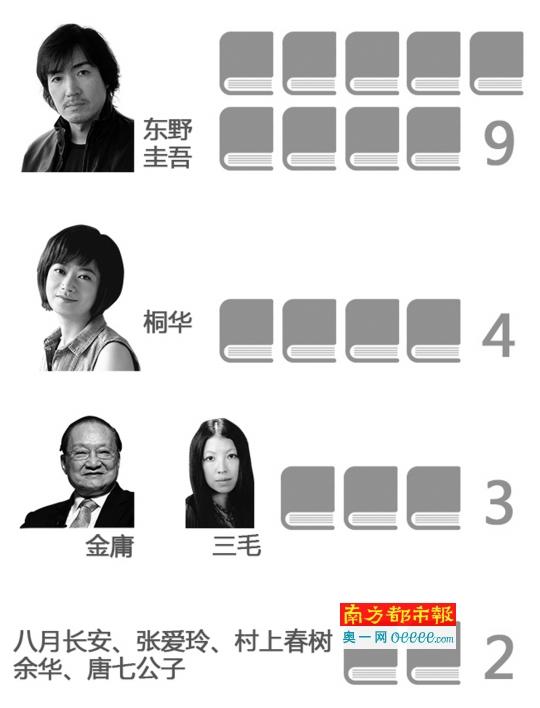 広州の大學(xué)14校の図書館で最も人気だった図書トップ10のうち、「小説」は6割以上を占めている。人気の図書としては、作家?路遙の「平凡的世界」と當(dāng)年明月の「明朝那些事児」がそれぞれ8回ずつランク入りして「最も人気の作品」ランキングの同列首位となった。外國(guó)人作家では、日本人作家が最も人気。なかでもミステリー小説家の東野圭吾は、9作品がランク入りし、その回?cái)?shù)は13回と、中國(guó)國(guó)內(nèi)外の作家を抑えて「最も人気の作家」となった。その他、村上春樹(shù)や渡辺淳一などの作品も人気だった。外國(guó)人作家の作品で、ランク入りの回?cái)?shù)が最も多かったのは、アフガニスタンの小説家?カーレド?ホッセイニの「カイト?ランナー」で、6回だった。(編集KN)