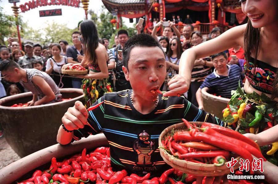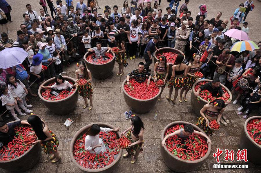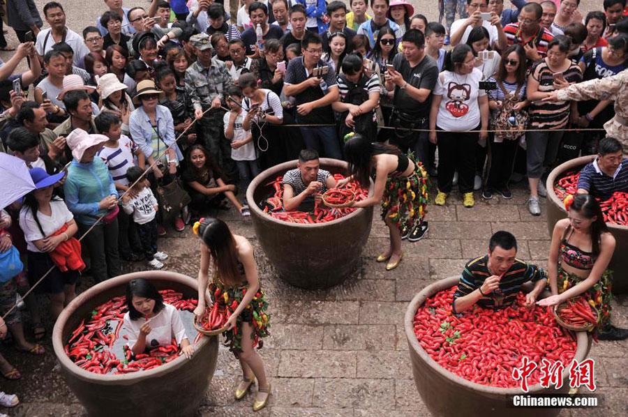 唐辛子に浸かりながら早食い!雲(yún)南で唐辛子三昧のイベント