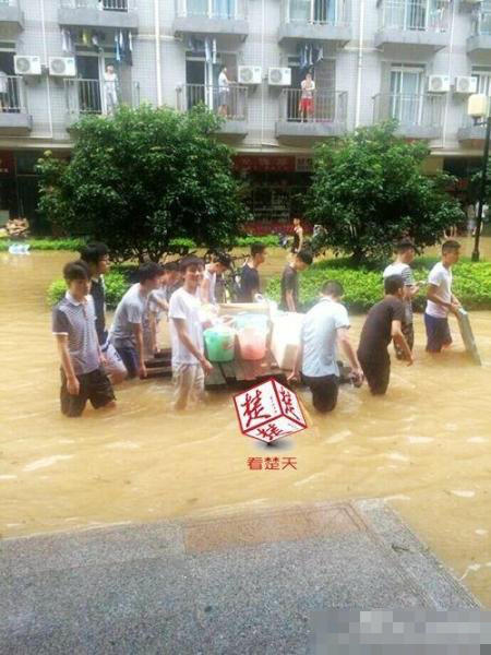 豪雨の猛威にさらされた武漢では多くの大學が冠水し、學生たちにとって食事をすることすら困難な狀況に陥っている。7月6日、武漢工商學院(湖北?。─扦蠈W生に約1萬個の弁當を配布、食堂スタッフと各學院のクラス委員が學生寮の入口まで運び、無料で學生に配った。楚天都市報が伝えた。(編集JK)
