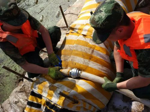 この防水壁の主な原理は、水を充填した帆布の防水袋を利用するというもので、つまり水を通さない大きな水嚢と言える。広げると6メートルに達(dá)し、収納すると1メートル以下になる。組み立てはいたって簡単。ある場所で堤が決壊する危険が生じ、決壊部分が小さい場合は、この移動(dòng)型折畳式の防水壁を現(xiàn)場に運(yùn)び、すみやかに組み立て、つなぎ合わせ、水を満たす。十分後には溢れ出てくる水を防ぎとめることができて、絶大な効果を発揮する。