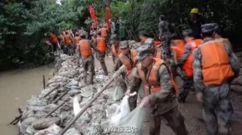 安徽省の五九■河(■は土へんに于)の災害現(xiàn)場では、中國獨自の「洪水対策スペシャルグッズ」を使って作業(yè)をしている。土嚢で100メートル以上の防水堤を作るとなると、30人で46時間かかる。だが、この「スペシャルグッズ」を使えば、たった12人で2時間あれば完成できる。