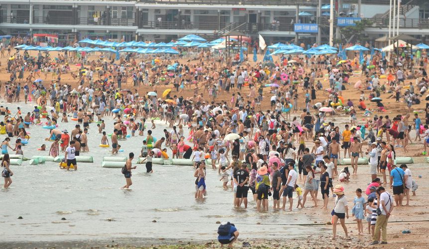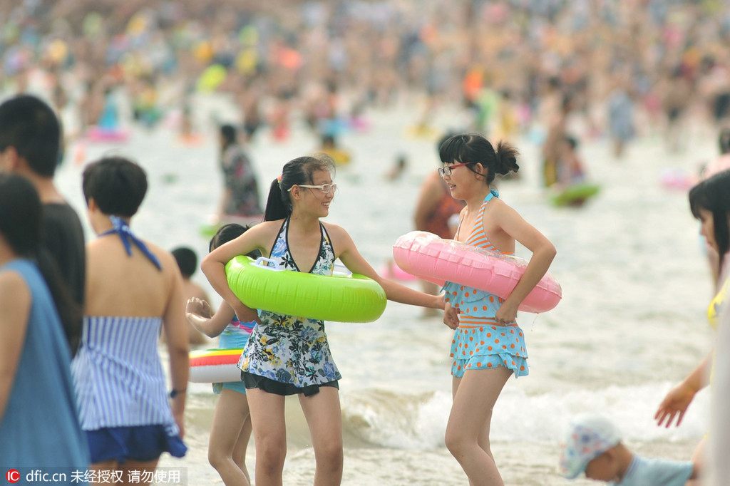 青島で高気溫続く 海水浴場(chǎng)は「イモ洗い狀態(tài)」