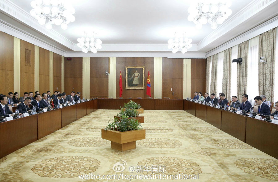 「中國(guó)とモンゴルは経済的補(bǔ)完性が高く、両國(guó)協(xié)力の一層の深化は新たなチャンスを迎えている。中國(guó)側(cè)は『シルクロード経済ベルト』イニシアティブとモンゴル側(cè)の『草原の道』発展戦略との連結(jié)を成し遂げ、二國(guó)間自由貿(mào)易協(xié)定の共同フィージビリティスタディを早期に始動(dòng)することを望んでいる」と指摘した。(編集NA)