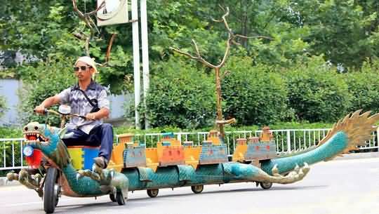 2012年8月15日、河南省周口市の康明智さんの隣人、康新學(xué)さんが「ドラゴンカー」を運(yùn)転。