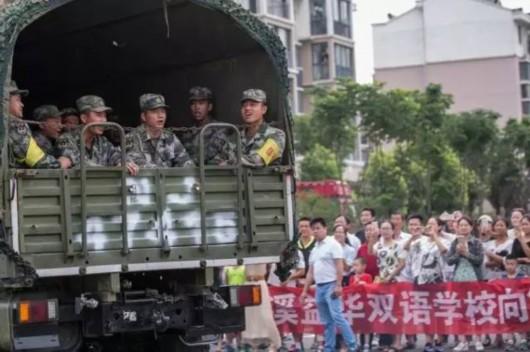 戦意高揚(yáng)歌の「われらは兵士だ。民衆(zhòng)の出身だ」という歌詞を聲高らかに歌い、見送る市民に応える隊(duì)員たち。