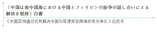 2016年7月13日、中華人民共和國(guó)國(guó)務(wù)院新聞弁公室は「中國(guó)は南中國(guó)海における中國(guó)とフィリピンの紛爭(zhēng)の話し合いによる解決を堅(jiān)持」という題目の白書を発表した。