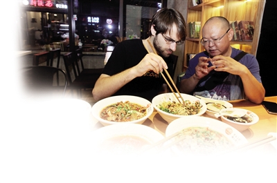 トウガラシの調(diào)味料、ゴマ油、ゴマだれ……。このほど金髪碧眼の米國人青年が重慶名物の麺料理?小麺の店で、麺を前に材料を真剣な目つきで確認(rèn)し、麺を食べる時(shí)にはおもむろにストローを出して牛肉で作ったスープを味わっていた。ニュージャージー州出身のこの男性は費(fèi)哲明さん(中國名)。重慶小麺好きが高じて、飛行機(jī)で北京からわざわざ小麺を食べるため重慶を訪れた。華龍網(wǎng)が報(bào)じた。