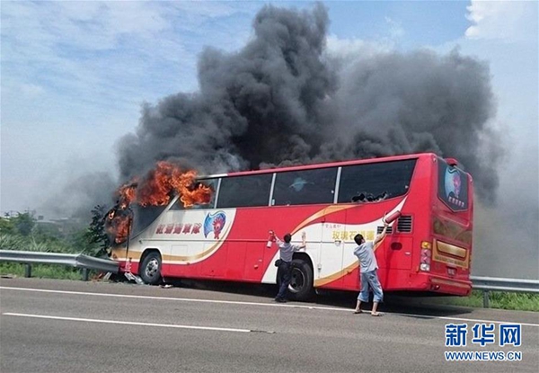 事件が発生したのは同日午後1時(shí)ごろ、観光バスが臺(tái)灣高速公路2號(hào)桃園國(guó)際空港連絡(luò)道を西に約3キロ走行した地點(diǎn)で、バスがガードレールに衝突して炎上し、乗客乗員が車內(nèi)に閉じ込められた。通報(bào)を受けた桃園の警察や消防員がただちに現(xiàn)場(chǎng)に駆け付け消火や救助を行ったものの、26人全員が死亡した。事故後、臺(tái)灣観光局がすぐに、観光バスの乗客は臺(tái)灣巨龍旅行社が受け入れた中國(guó)大陸部の遼寧省大連市から來(lái)たツアー客で、男性8人、女性16人の計(jì)24人であることを確認(rèn)。うち3人が15歳未満だった。また、現(xiàn)地の運(yùn)転手とガイドも亡くなった。