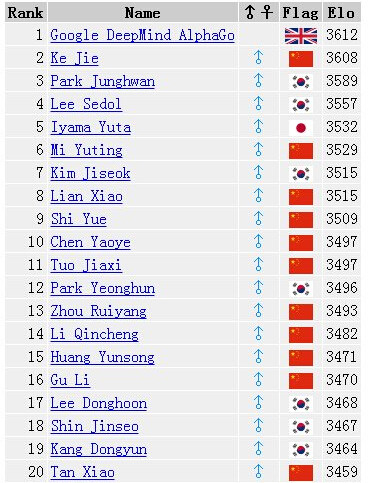 人工知能が「人類の知恵の最後の砦」と呼ばれる囲碁で人間の選手を抜き、世界一になるのは史上初の出來事だ??率悉献罱卧嚭悉?連敗したため、AlphaGoが3612ポイントで世界一になった。