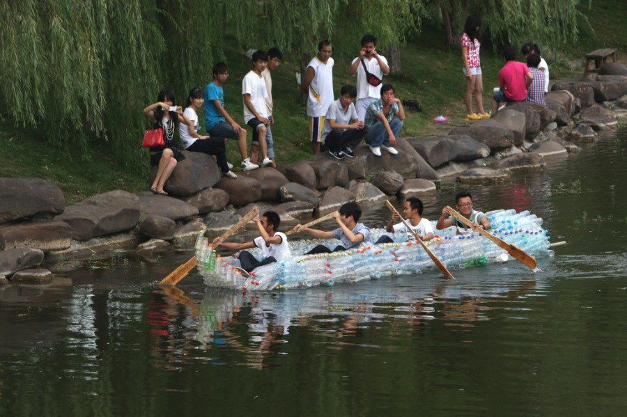 2011年9月14日午後、重慶科技學院の霊湖では一隻の「ペットボトル」船が4人の男子生徒を乗せ、20人以上の生徒に見守られながら初航行を完了した。同船は湖で20分以上航行した。全長は4.84メートル、幅は1.3メートル、重さは58.2キロの同船は「思密達號」と呼ばれ、男子4人は1504本のペットボトルを使い、約2ヶ月をかけて完成させたのだ。