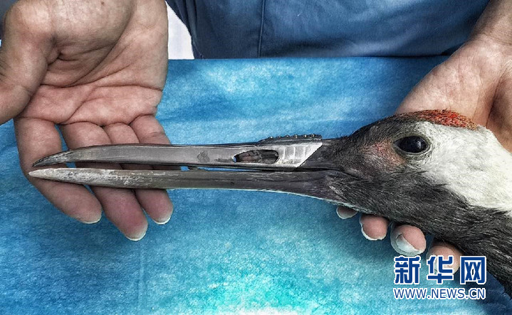 10日午後、3Dプリンターで印刷したチタン合金製の「くちばし」を、世界的にも絶滅が危懼されている野生動物のタンチョウヅルに移植する世界初の手術(shù)が広州立徳動物病院で無事完了した。新華社が伝えた。