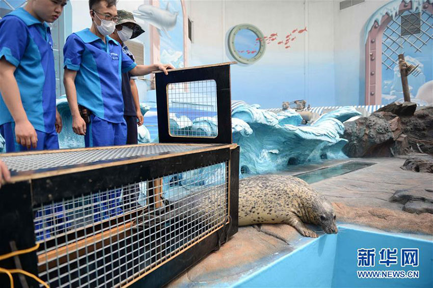 7月21日、哈爾濱(ハルビン)極地館內(nèi)の「海洋歓楽島」で「動物ふれあいコーナー」の工事が終わり、一般向けの開放が始まった。同コーナーではニューフェイスとなるメス4頭、オス2頭、合計6頭のゴマフアザラシが初めて姿を見せた。寫真は觸れ合いコーナーに姿を現(xiàn)したアザラシたち(7月21日撮影)。新華網(wǎng)が伝えた。(編集YK)