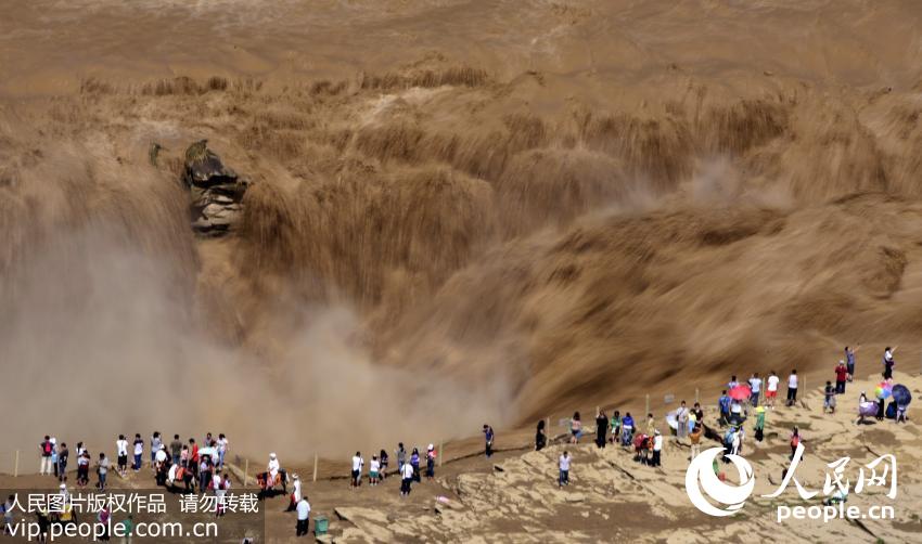 このほど、上流での強い雨の影響により、黃河主流の晉陝峽谷は水位が上昇。山西省吉県の壷口瀑布は水量が増大して、大きな滝と小さな滝が一つに連なり、特大滝となって勢いよく水が流れ落ちる壯大な景観が出現(xiàn)し、大勢の観光客や寫真愛好家たちをこの地に呼び込んでいる。(編集KS)