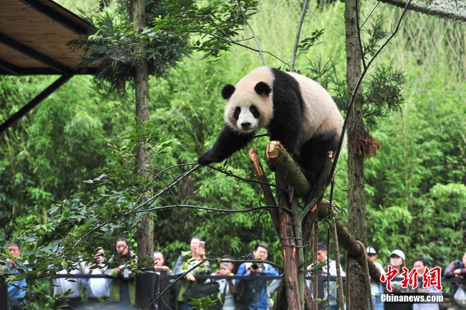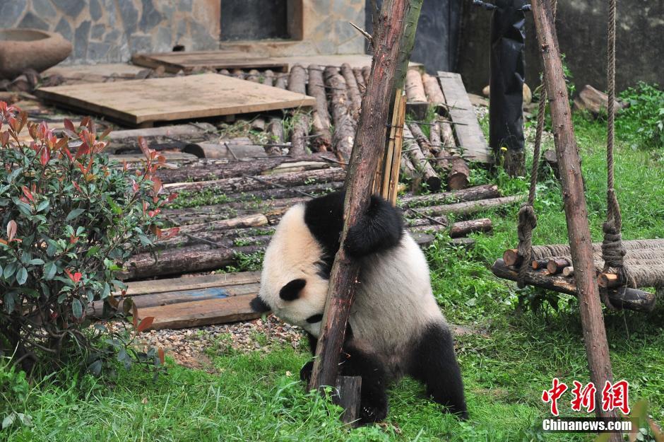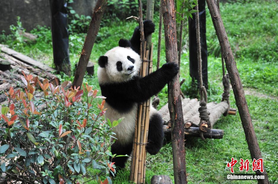 雲(yún)南野生動物園(雲(yún)南省昆明市)のパンダ舎にスタッフが設(shè)置したブランコで23日、2頭のジャイアントパンダのナンナン(ナンは國がまえに女)と和興(フーシン)が遊んでいた。特にナンナンはブランコが気に入ったようで、ブランコによじ上ったりして色んな蕓を披露していた。中國新聞網(wǎng)が伝えた。(編集JK)