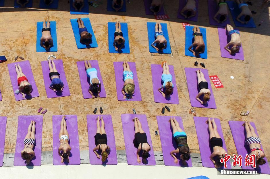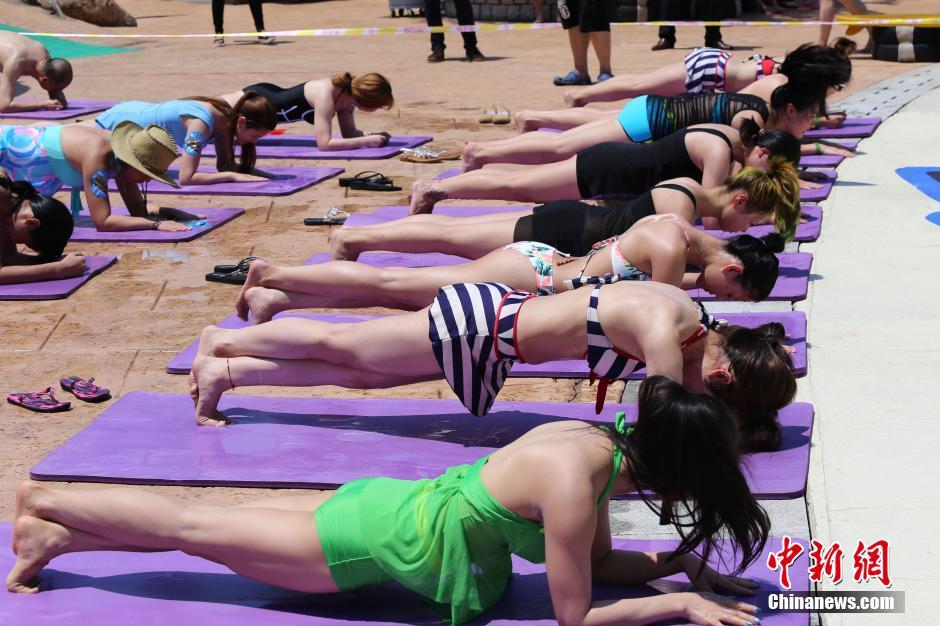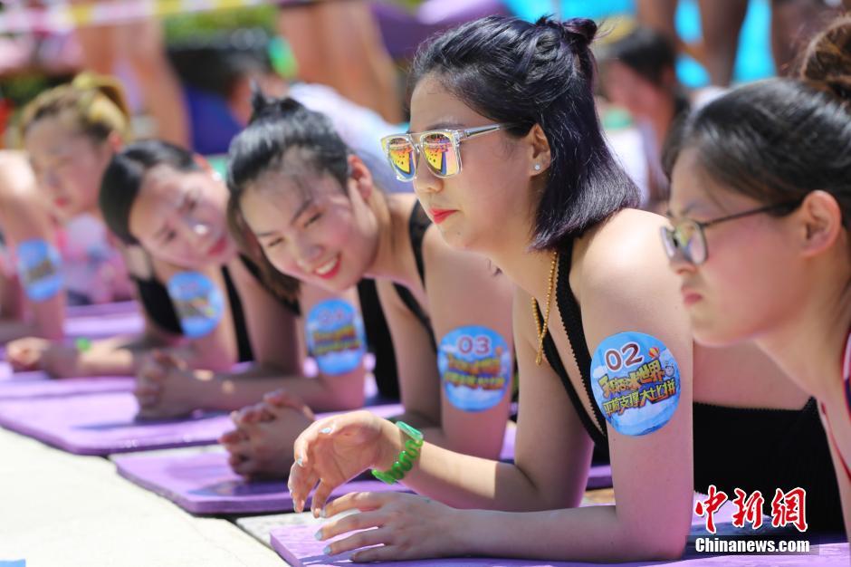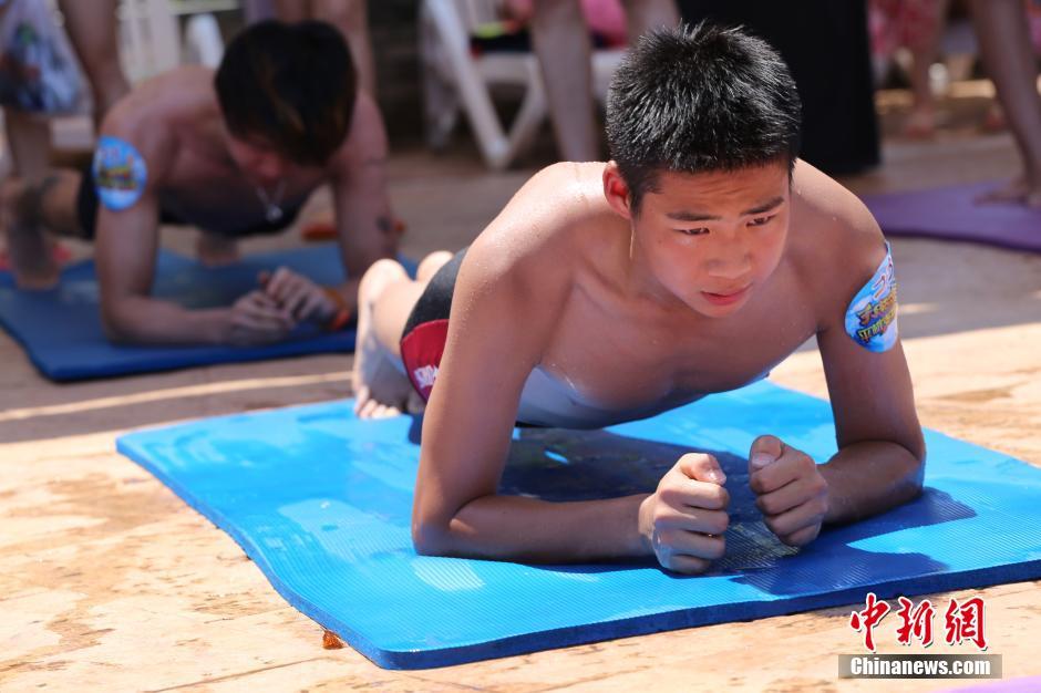 ビーチプランクチャレンジ大會が7月23日、江蘇省■陽市(■はさんずいに栗)の天目湖で開催され、大勢の人々が炎天下の中、體力と忍耐力の限界にチャレンジしていた。(編集JK)