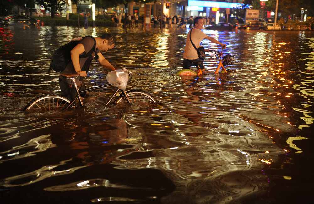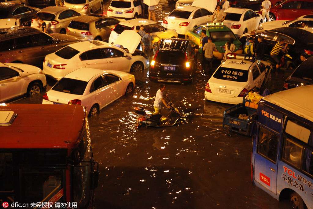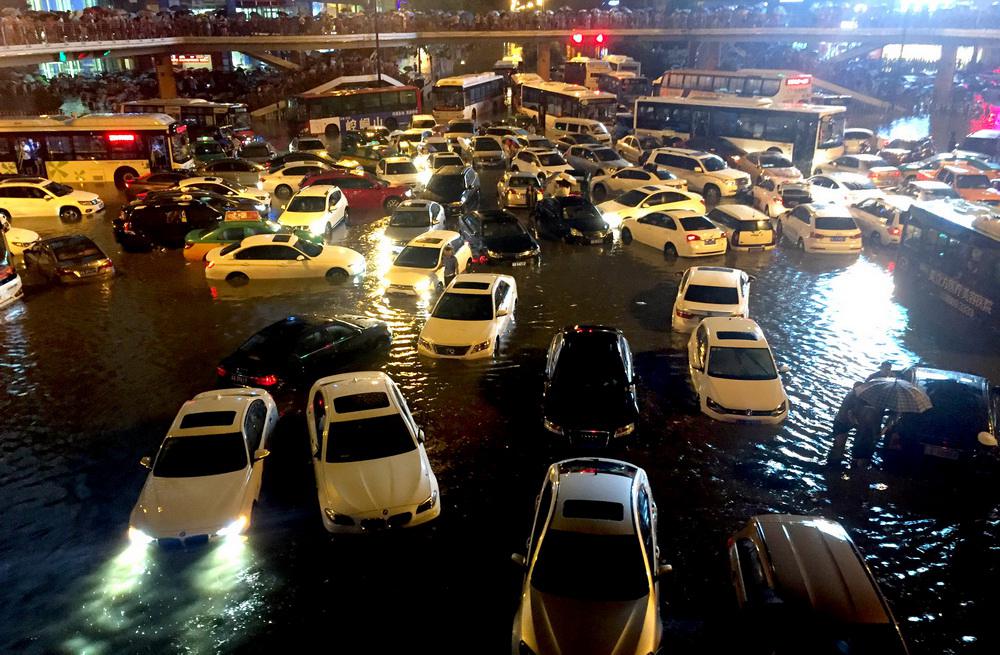 短時(shí)間で集中的な豪雨に見舞われた陜西省西安市では7月24日夜、多くの場(chǎng)所で道路の冠水が生じ、交通がマヒ狀態(tài)に陥った。(編集JK)