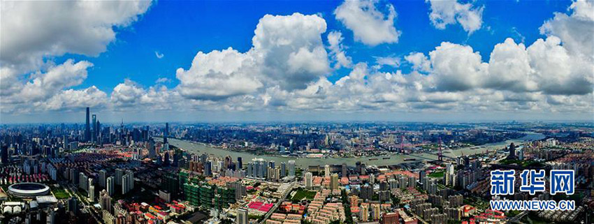 8月9日、上海では「抜けるような青空」の天気が続き、青い空と白い雲(yún)の下、壯観と表現(xiàn)するにふさわしい雄大な上海の街並みが広がっている。新華網(wǎng)が伝えた。(編集YK)