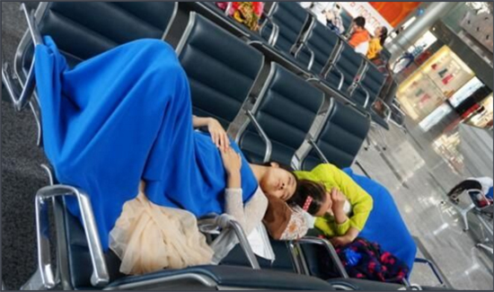 この便の搭乗時間は午後7時5分で、ロシアの空港安全検査も通過後のことだったこともあり、午後5時40分には全員が出発ロビーで搭乗を待っていたという。しかし9つのツアー旅行に參加予定の中國人観光客計383人は搭乗時刻になってもまだ機內へと案內されず、出発時間の変更と具體的な原因、狀況を説明するスタッフもいなかった。3時間後、航空會社は各搭乗客にミネラルウォーター1本と空港のMyMyレストランで午前0時以降に使用可能な450ルーブル(約700円)相當の食事券を配布した。