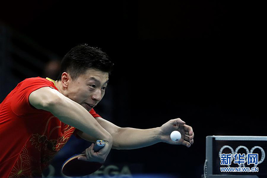 試合中の中國(guó)代表の馬龍選手(8月7日撮影)