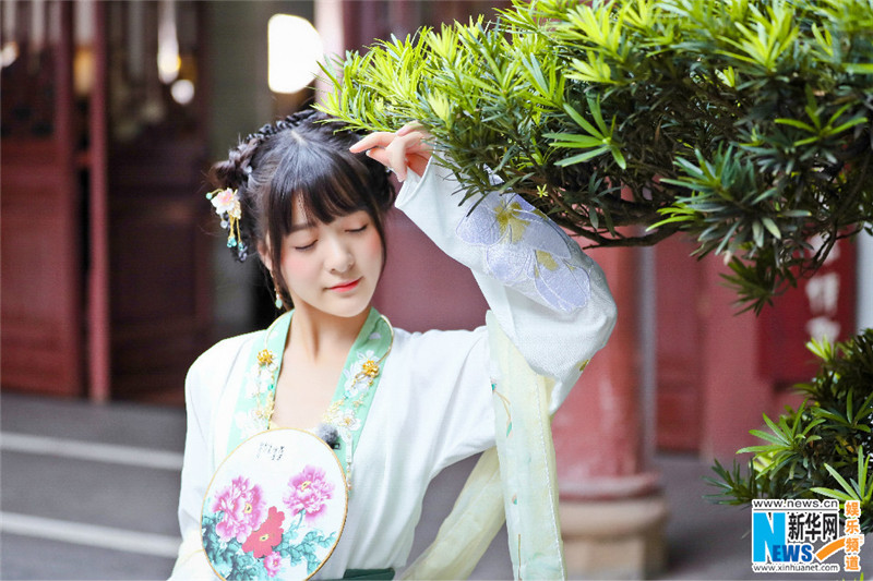 「漢服マニア」の女優(yōu)徐嬌(シュー?チャオ)はテレビ番組「Up Idol」に出演するときは決まって古風な衣裝を著ている。今回の成都の旅では、髪を二つのお団子に束ねており、その姿は「隣の女の子」といった愛らしさを醸し出している。そこに特徴的な銀のかんざしを挿して、古典畫の人物のように、ゆっくりと登場した。簡素な優(yōu)雅さを湛えた漢服のスカートが風に舞うその優(yōu)美な姿から目が離せなくなる。新華網(wǎng)が報じた。(編集TK)