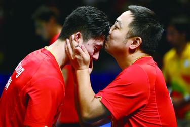 また「今日はちょうど、私と妻の結(jié)婚十周年記念日。私は結(jié)婚十周年記念のプレゼントとして、彼女に是非この金メダルを贈りたいと思っていた。ついにそれが実現(xiàn)した。とても面白いことにちょうど8年前にも、同じことがあった」と語った。8年前の8月18日にも中國卓球男子は北京五輪で今回と同じように団體金を獲得したのだ。