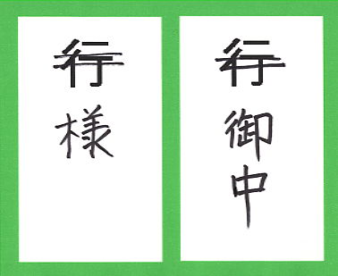 日本の封筒には、宛先の最後に「行」と書かれている場合がある。しかし、「行」を使う時は、自分が受取人である場合で、別の人に送る場合は、「行」をそのまま使うと失禮になるため、「様」または「御中」に書き換えなければならない。