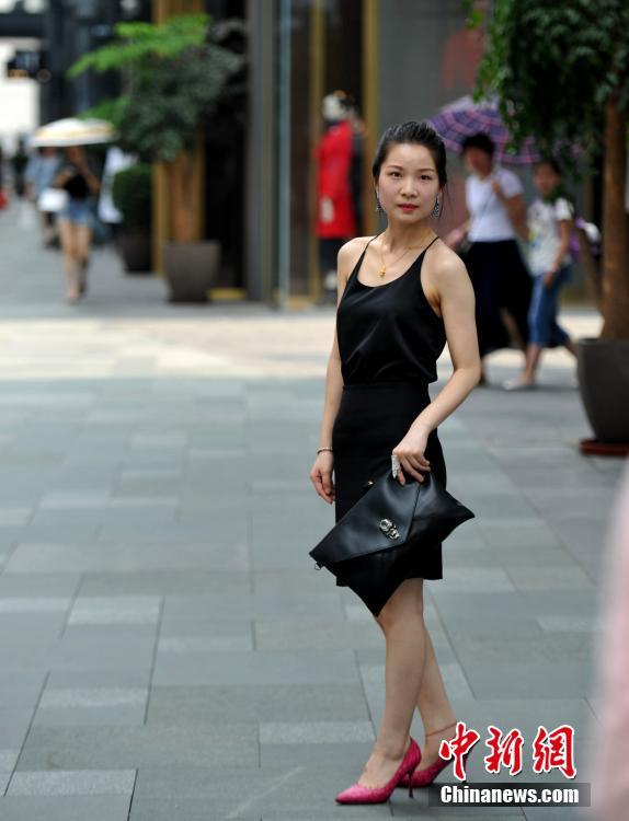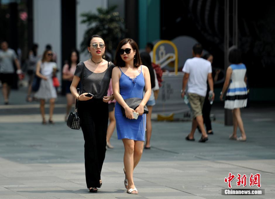 8月23日、四川省成都市では再び高溫の天気となったが、街行く美女たちは半袖にミニスカートという涼しげな裝いで、厳しい日差しの中でもショッピングを楽しんでいた。寫真は成都の街中で記念撮影する女性たち(8月23日撮影)。中國新聞網(wǎng)が伝えた。(編集YK)