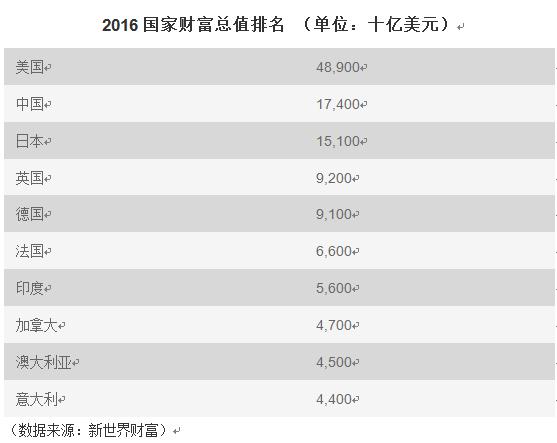 ロシア?スプートニクが24日に伝えたところによると、市場調(diào)査會社ニュー?ワールド?ウェルスが発表した「W10 世界最富裕國番付」で、中國は2位だった。環(huán)球網(wǎng)が伝えた。