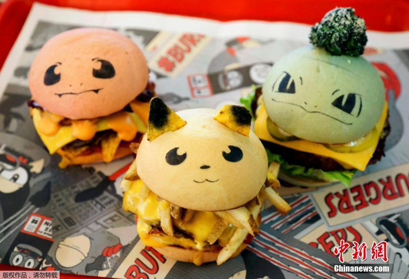 現(xiàn)地時間8月26日、オーストラリアのシドニーのあるレストランでは、今世界中で人気絶頂となっているポケットモンスターのキャラクターをかたどったハンバーガーが人気を集めている。寫真はそれぞれ「ヒトカゲ」、「ピカチュウ」、「フシギダネ」をかたどったハンバーガー(寫真左から)。中國新聞網(wǎng)が伝えた。(編集TG)