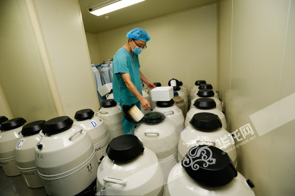 処置室では、小型アイスボックスのような形をしている數(shù)十臺(tái)の箱が、ひときわ人目を引いた。劉さんは、「これらは、受精卵を培養(yǎng)し、保管するための培養(yǎng)ボックスで、內(nèi)部の溫度は37℃に保たれ、全てが人體內(nèi)部と同じ環(huán)境に整えられている」と説明しながら、培養(yǎng)ボックスを開(kāi)けた。記者が中を覗いてみると、內(nèi)部は上下2段に分かれており、それぞれに仕切り版があり、いくつかの透明な入れ物が置かれていた。