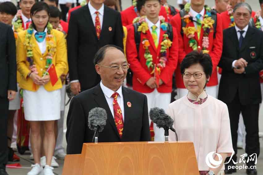 28日、リオ五輪で大活躍した中國代表選手団が香港地區(qū)を訪問し、交流活動を行った。代表団は香港のいくつかの會場に分かれて、バドミントン、卓球、飛び込みの演技を披露した。さらに香港のアスリートやボーイスカウトなどの団體と交流し、メダル獲得の喜びと奮闘努力する精神を分かち合った。人民網(wǎng)が伝えた。(編集YK)