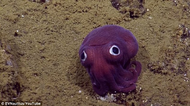 潛水艇が南カリフォルニア州沖の太平洋の海底に入ると、彼らはこの小さな紫色の、丸い形をした生物を発見した。これが何であるのかについては、さまざまな説がある。これはタコだと言う人もいれば、イカ、さらにはスルメイカだと言う人もいる。この3種の魚は主に外套膜で區(qū)別される。これらの體は頭、足、胴に分かれる。うち胴が外套膜だ。タコの外套膜は球形、イカは袋型、スルメイカは錐形だ。