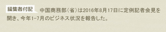 商務部(商務?。─?7日に行われた定例記者會見で、2016年1~7月のビジネス運営狀況を発表した。それによると、7月の全國社會消費財小売総額は2兆6900億元(1元は約15.1円)で、前年同期比10.2%増となり、伸び率は前月より0.4ポイント低下。物価要因を考慮した実質増加率は9.8%。1?7月は前年同期比10.3%増で、伸び率は前年と同水準。ネット通販が高度成長を維持した。