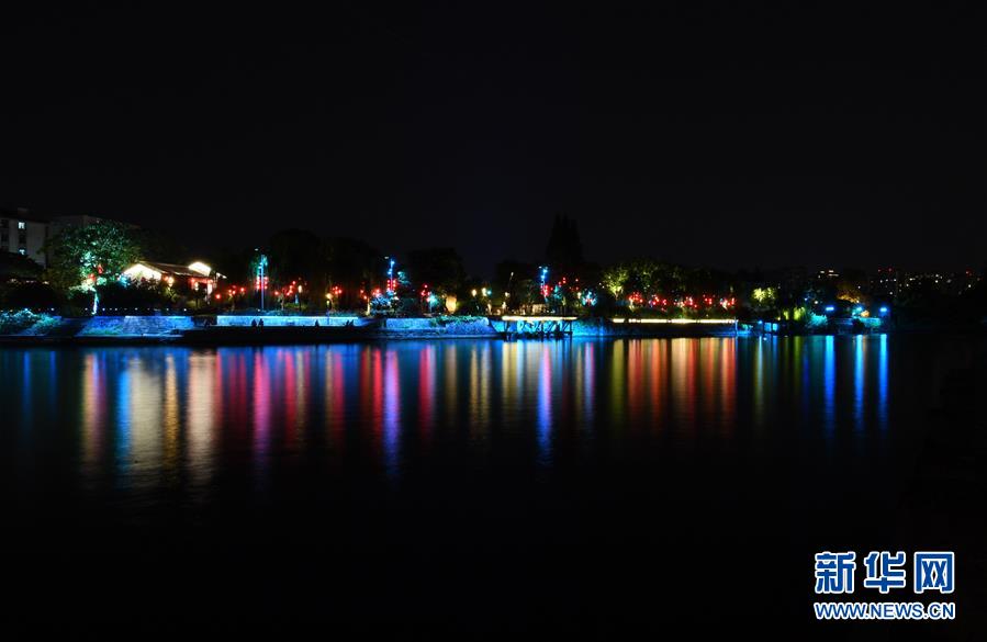 G20開催を控えた浙江省の杭州市。夜のとばりが下りると京杭大運河沿いはライトアップで建物や橋が燦然と浮かび上がり、幻想的な美しい景色が広がる。新華社が伝えた。(編集YK)