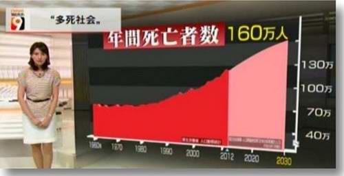 厚生労働省によると、日本の2015年の死亡者數(shù)は130萬人を突破し、2039年にはその數(shù)が167萬人に達すると予想されている。