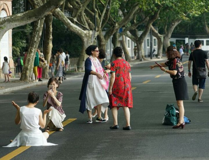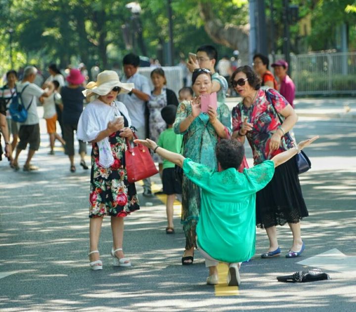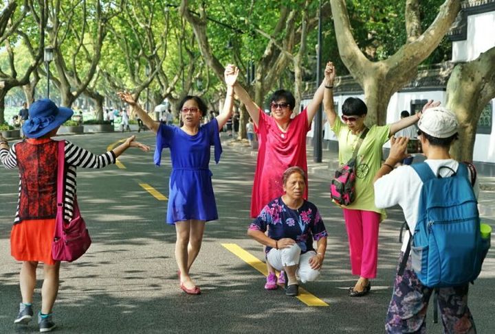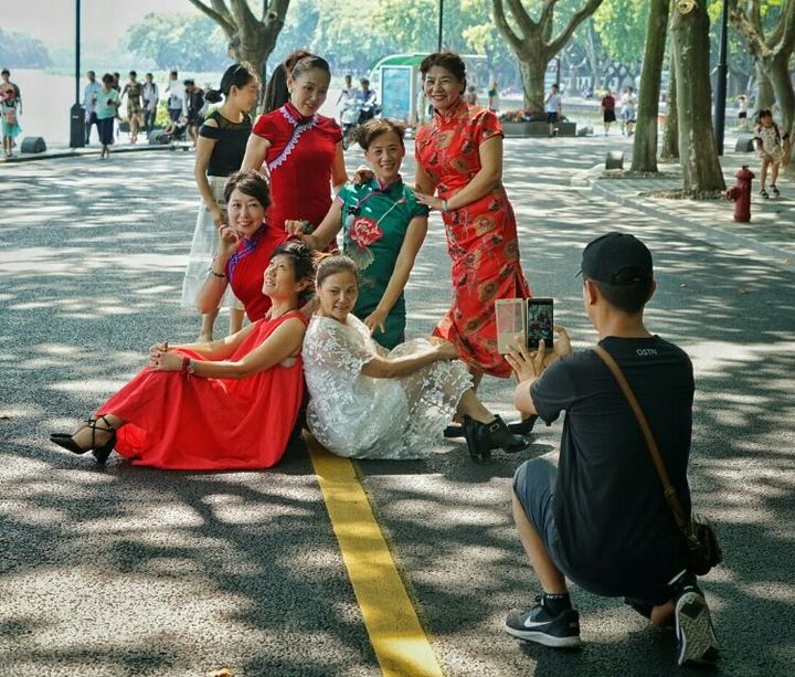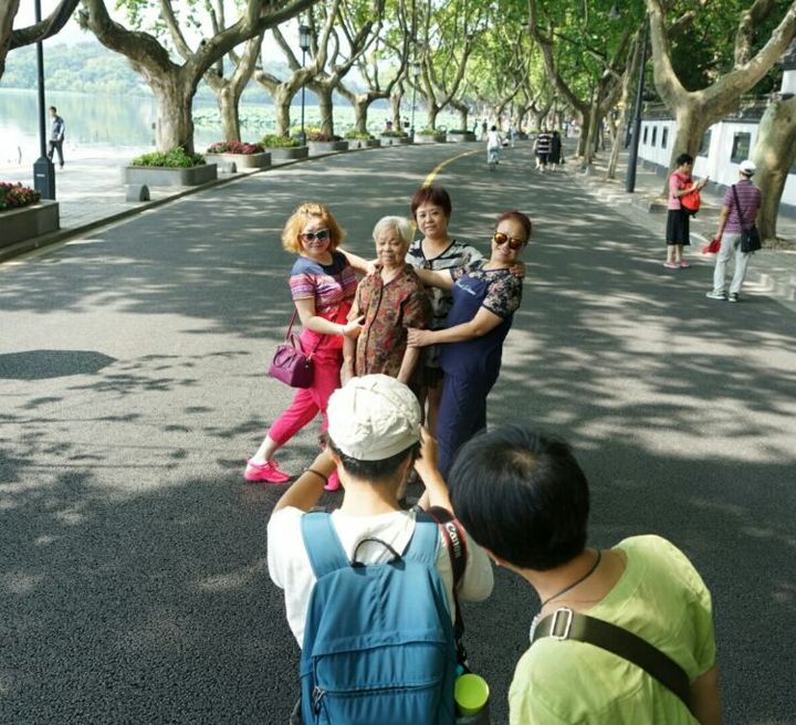 西湖風(fēng)景區(qū)封鎖を前に住民たちが記念撮影 G20サミット