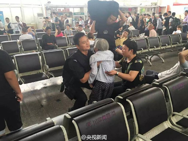 9月5日、浙江省の海寧駅で劉さん(80)が身分証を忘れてしまい、嫁や孫と一緒に安全検査口で途方にくれていた。そのことに気付いた特別警察の宋傑さんは、列車の発車時間まで20分しかなかったので、劉さんの家族に先に列車に乗るように促し、自分は足が不自由な劉さんを抱きかかえて窓口まで猛ダッシュし、最短時間で劉さんの臨時身分証の発行手続きを行った。それから宋さんは再び劉さんを抱きかかえて殘り1キロを走りきり、他の警察官と一緒に劉さんを列車まで送り屆けた。中國中央テレビの公式微博(ウェイボー)が伝えた。(編集YK)