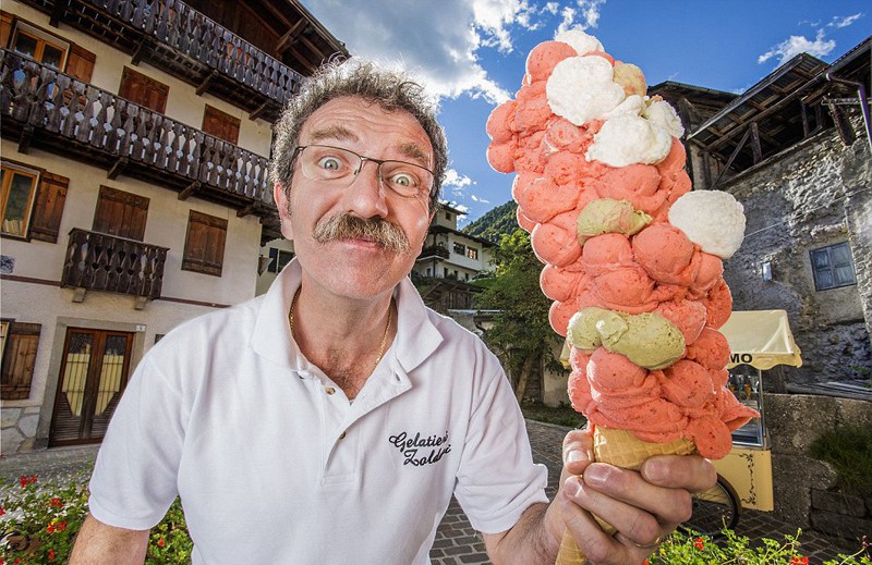 イタリアのDimitri Pancieraさんは、アイスクリームスクープですくったアイスをコーンの上に121個積み上げ、自らが打ち立てた世界記録109個を更新した。