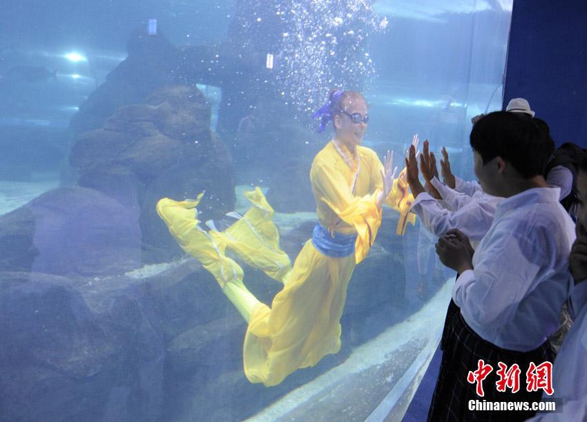 9月13日、中秋節(jié)(舊暦8月15日、今年は9月15日)を目前に控え、吉林省の長(zhǎng)春中泰海洋世界ではロシア人バレエダンサーが中秋節(jié)の故事として有名な神話「嫦娥奔月」の水中バレエ公演を行い、その美しい舞いを多くの市民が楽しんだ。中國(guó)新聞網(wǎng)が伝えた。(編集TG)